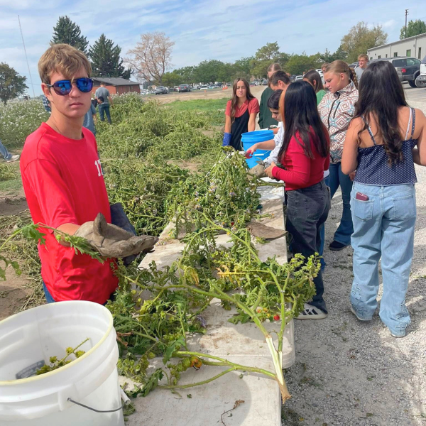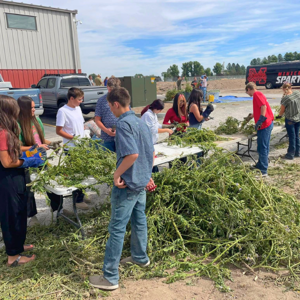 Students from Minico High School students harvesting and sectioning litchi tomato plants